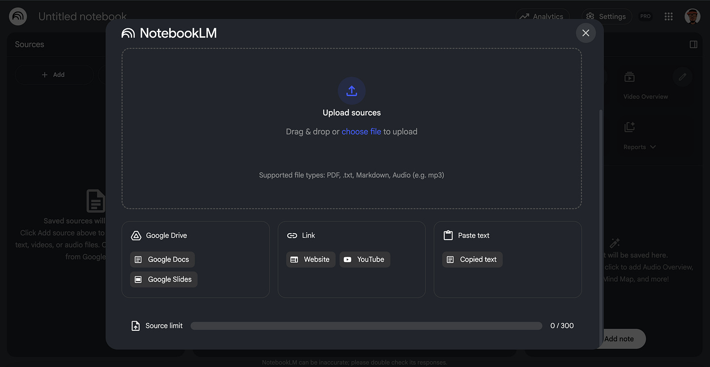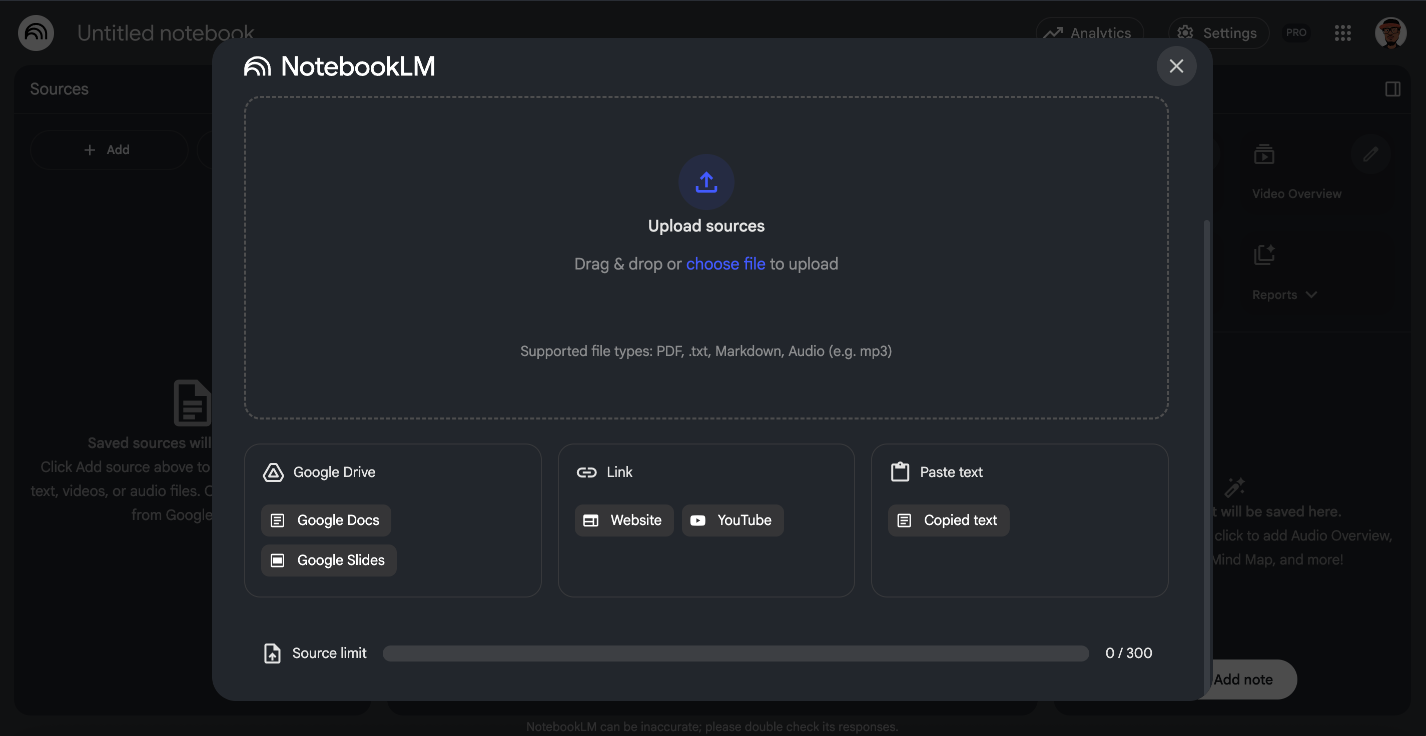 Navigate to NotebookLM and select "Create new notebook" so this becomes your high-tech operations center. Here's where the magic happens: