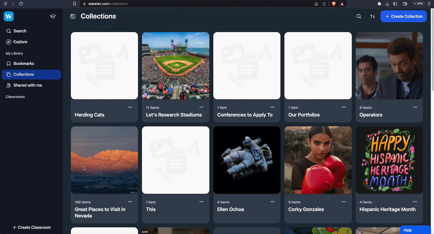 While there are any number of tools one might use to have your learners share their work, Wakelet is a great choice. There is a classroom feature that allows you to use Google Classroom, Microsoft, or Clever in order to populate your Wakelet with your students easily. It is designed for curation and sharing by default so there's no need to create a Google Slide or Google Doc for learners to turn in.