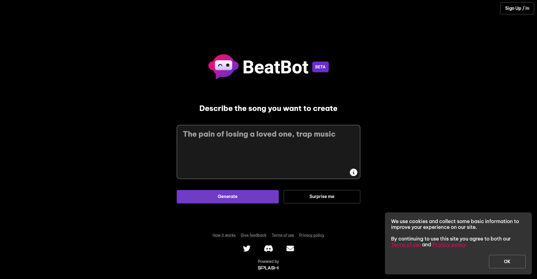 The prompt is very simple = Subject, genre/type of music. For example, Food chains, George Duke https://beatbot.fm/song/8a07f794bc5843b9bd120a0644b07d8a